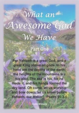 Yahweh, our God, is truly awesome. In Part One, we have been learning what He reveals about Himself in the very special gift of His Word to us – He is so awesome and glorious; so high and exalted; with authority and powers that are way beyond our comprehension. He is the sovereign ruler over all creation; working out His universal plans, with the intent that one day He will create a new heavens and a new earth, where those who have become part of His family will spend eternity in His glorious presence.